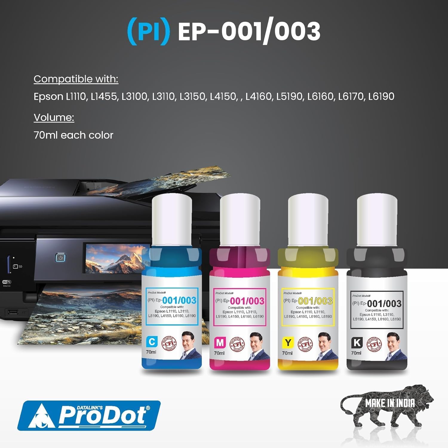 Compatible Printers: ProDot Refill Ink are Compatible with Epson L1110, L1455, L3100, L3101, L3110, L3150, L4150, L4160, L5190, L6160, L6170, L6190 Ink-Tank Printers