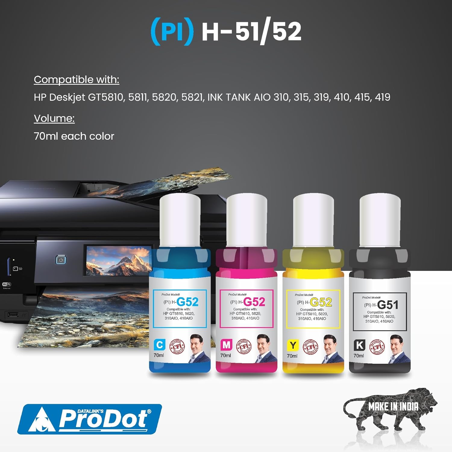 Compatible Printers: ProDot Refill Ink are Compatible with HP Deskjet GT5810, 5811, 5820, 5821 Ink Tank AIO 310, 315, 319, 410, 415, 419 Ink-Tank Printers