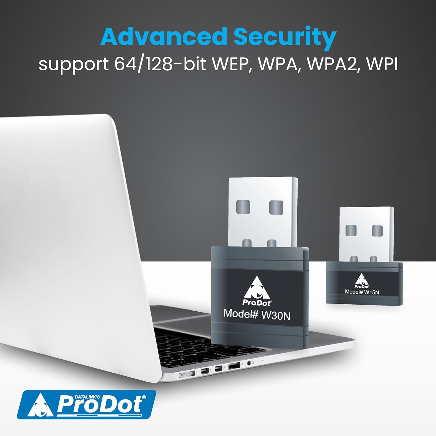 ProDot USB WiFi Adapter, 150Mbps 2.4GHz Nano Size Dongle, Wireless Network Adapter for Desktop PC Laptop, Supports Windows 11, 10, 8.1, 8, 7, XP