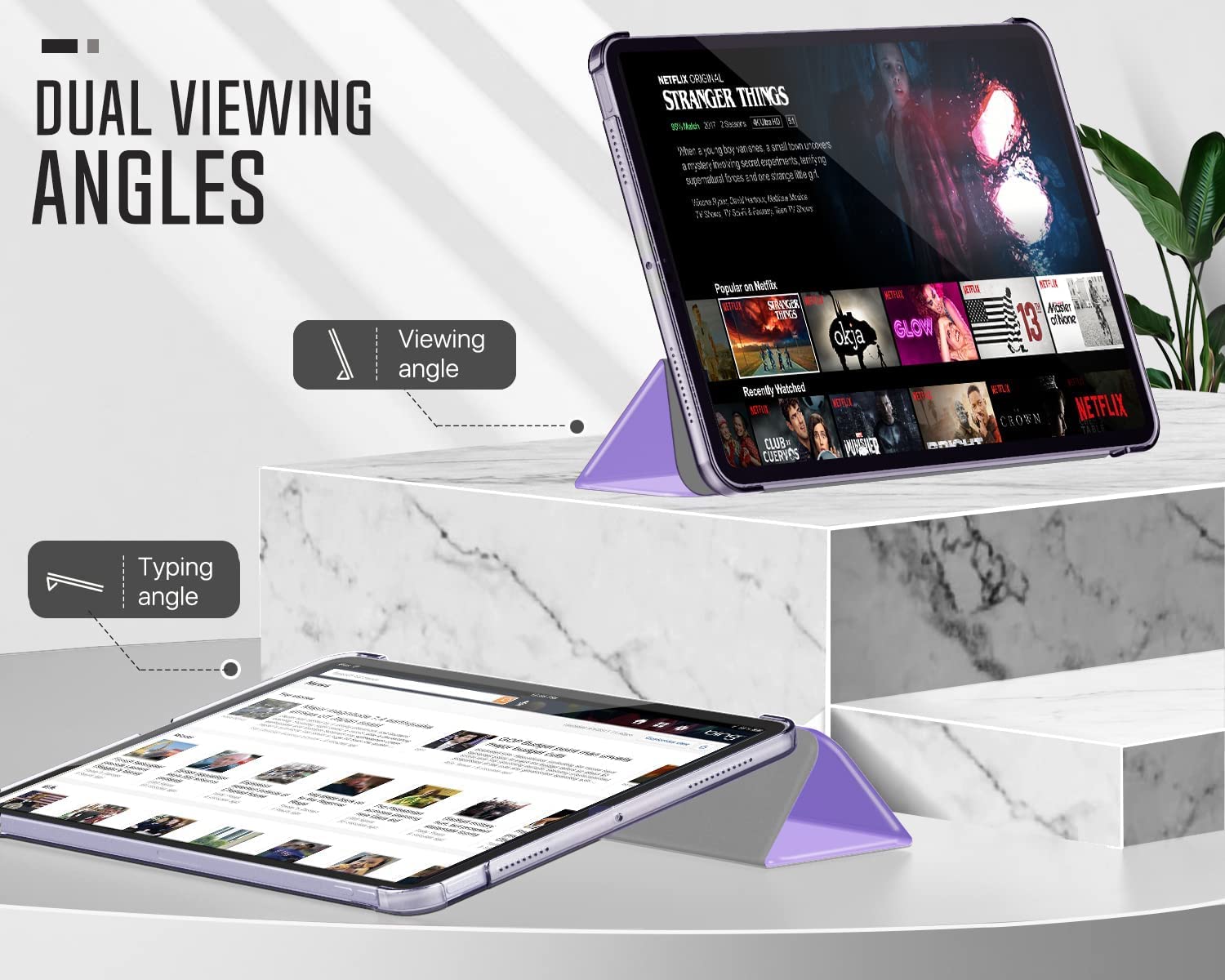 Tri-fold front cover folds in just the right places to give you ergonomic viewing and typing positions, less wrist stress and fatigue, more enjoyable entertainment.