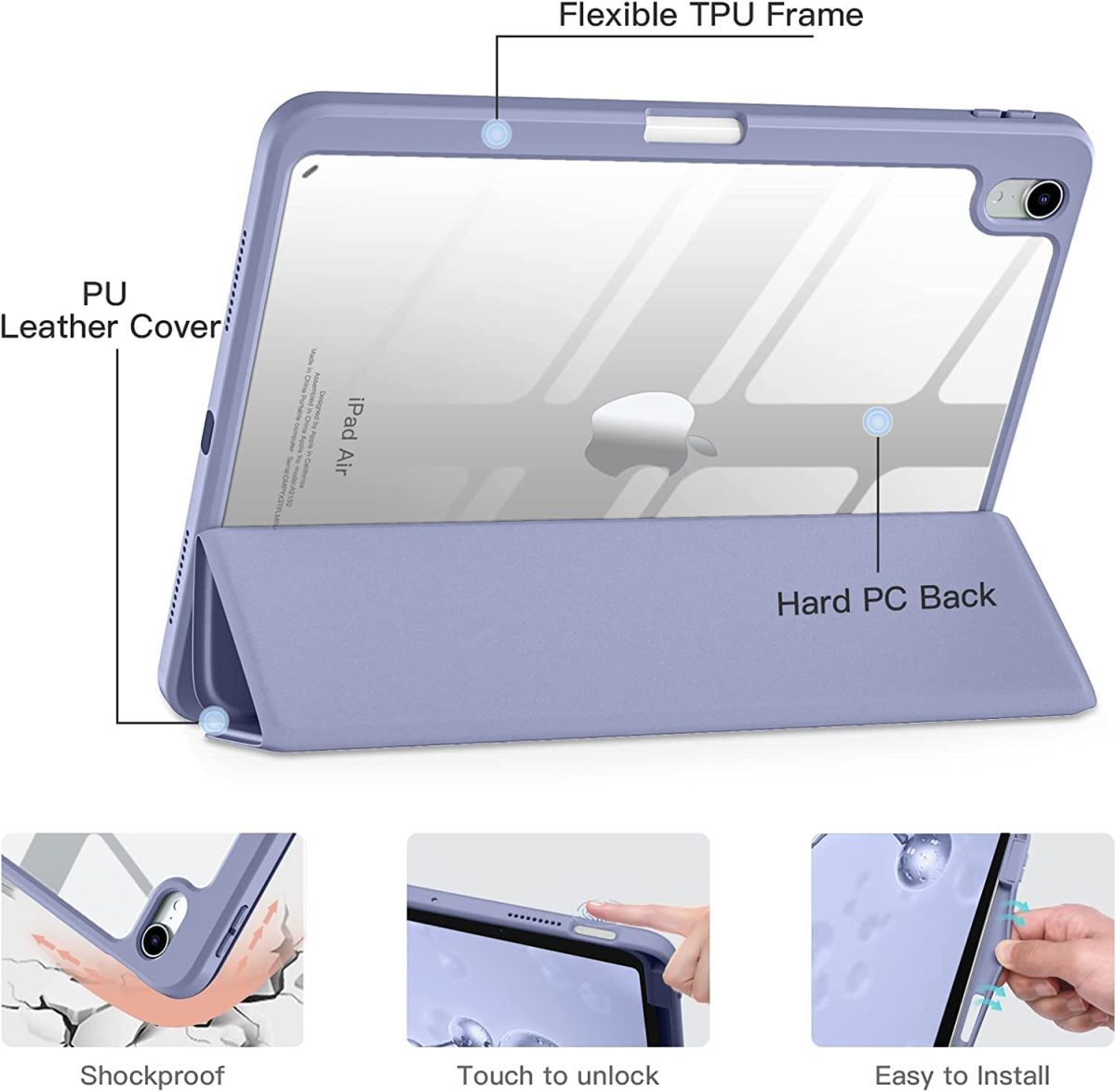 ProElite Case for iPad Air 11 Inch M3/M2 2025/2024, iPad Air 10.9 inch 5th/4th Gen & iPad Pro 11 inch 4th/3rd Gen 2022 case Cover, Transparent Smart Flip Cover with Pencil Holder, Lavender