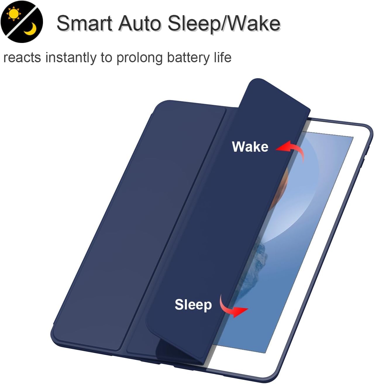 Designed for Trifold Stand – You can easily prop up the ipad with dual standing positions for enjoy the most comfortable keyboard-typing and movie-viewing.