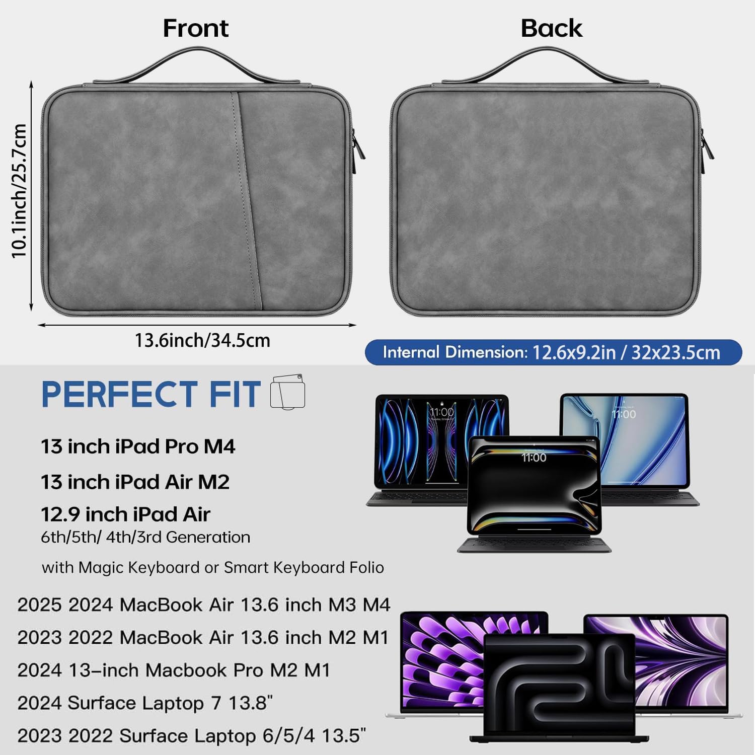 COMPATIBILITY – The sleeve bag fits most 12″-13″ Tablets. Fits Samsung Galaxy Tab S9 FE+/S7/S8 Plus/S9 Plus/S7 FE 12.4″, Apple iPad Pro 12.9″, MacBook Air/Pro Retina, Microsoft Surface Pro 4/5/6/7/8/9.