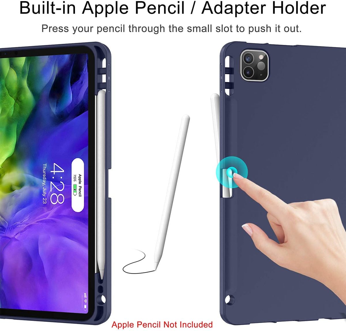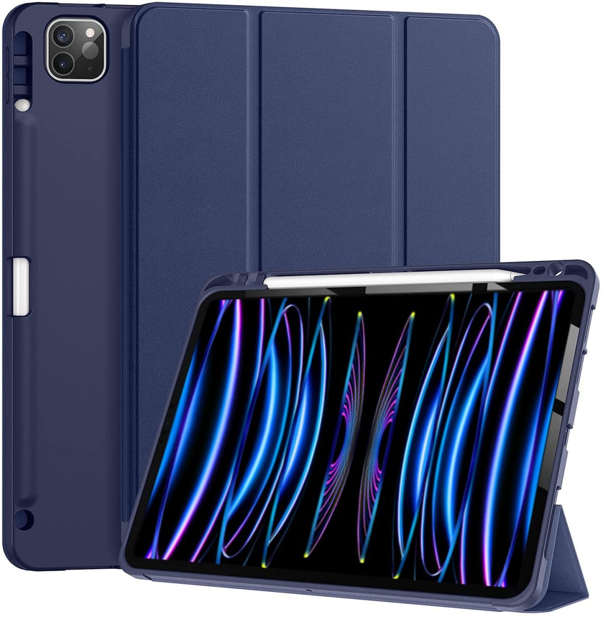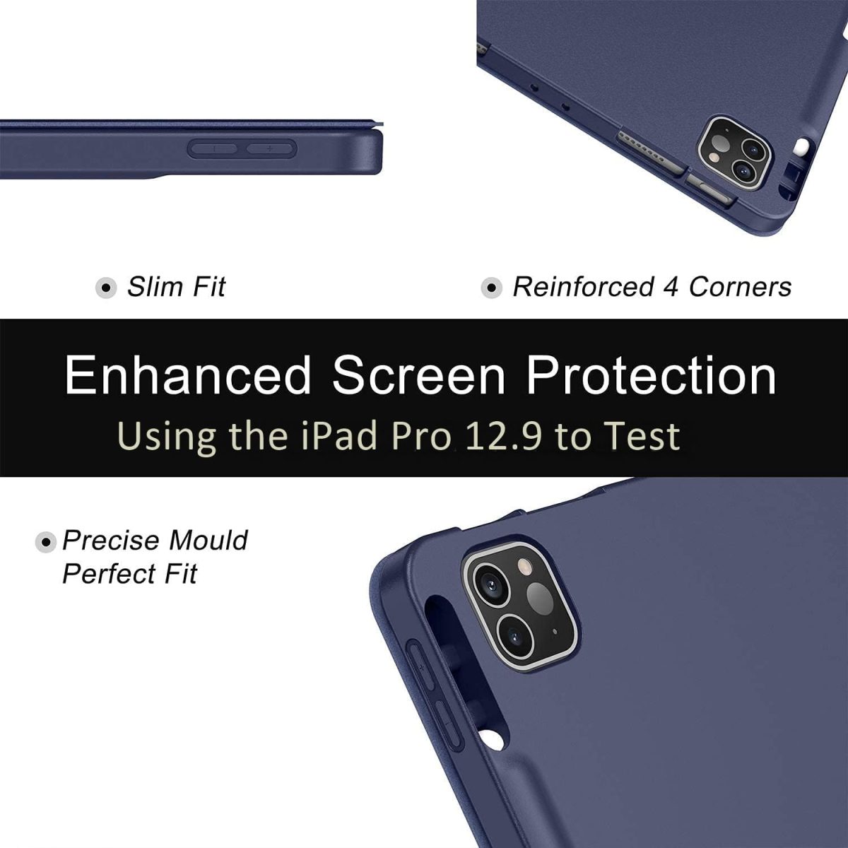 ProElite Smart Case for iPad Pro 12.9 inch 2022/2021 6th/5th Generation [Auto Sleep/Wake Cover] [Pencil Holder] [Soft Flexible Case] Recoil Series – Dark Blue