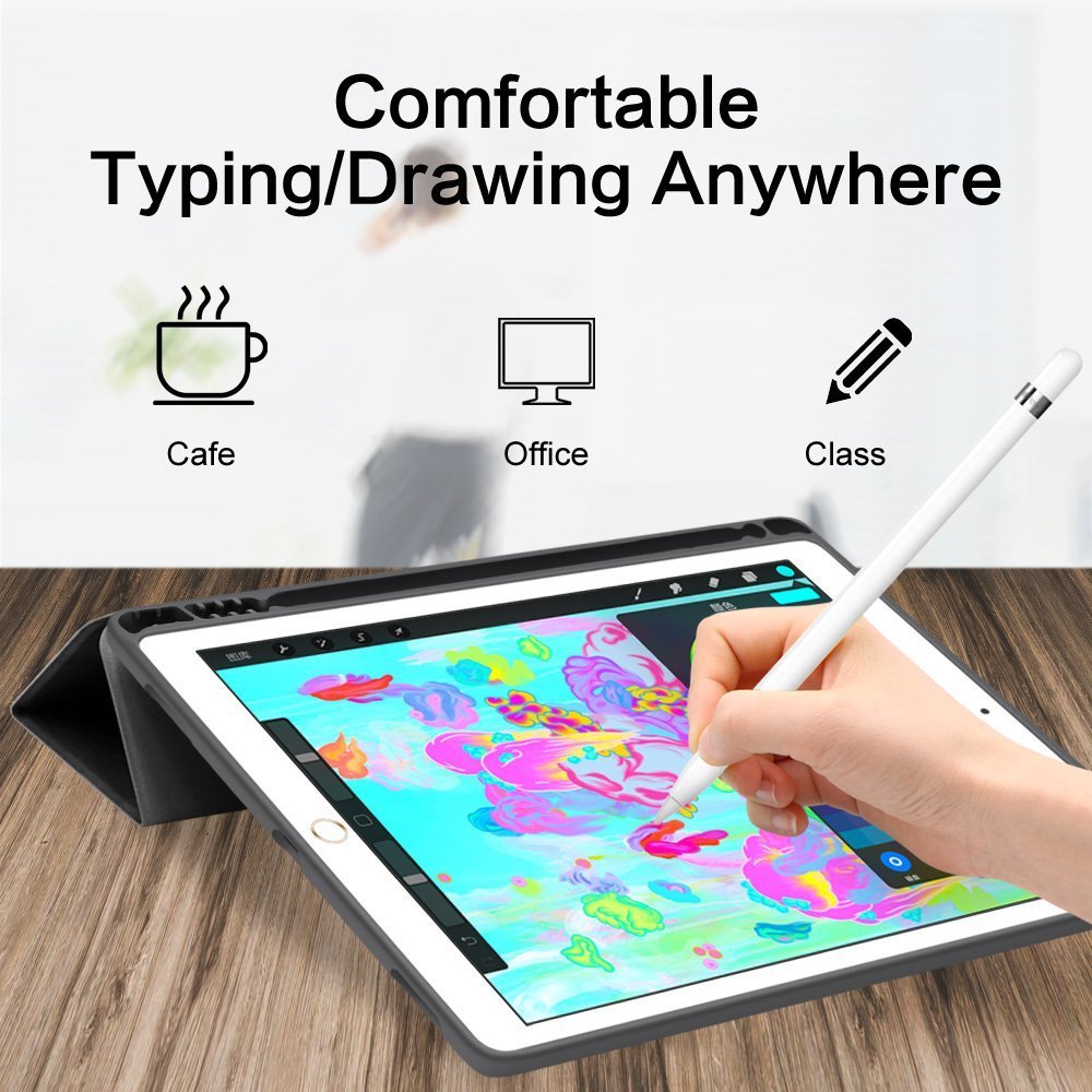 Built-in Apple Pencil slot and holder: Securely grabs your Pencil in place tightly to avoid losing; two holes behind the holder allow you to push your pencil out conveniently.