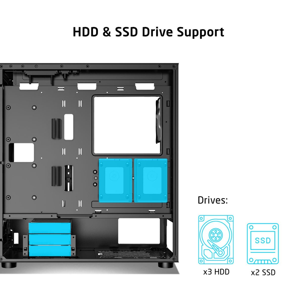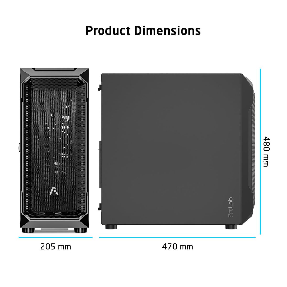 ✇ Mid-Tower Form Factor Case The 47 cm height of the case puts this comfortably in the mid-tower segment. The side glass and front ventilation makes this suitable for Gaming as well as business uses.