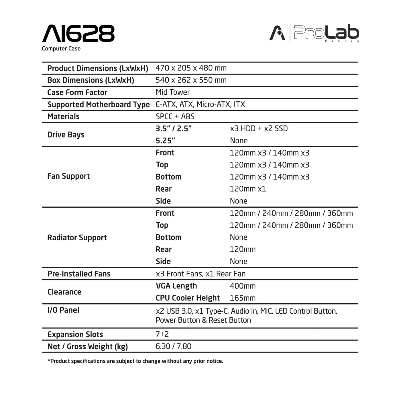 🖥️ Minimal Mid-Tower Beast! : Designed with the latest workstations in mind, the AI628 can hold up to E-ATX Motherboards, 360mm Coolers on top and in front, and up to 400mm of GPU.