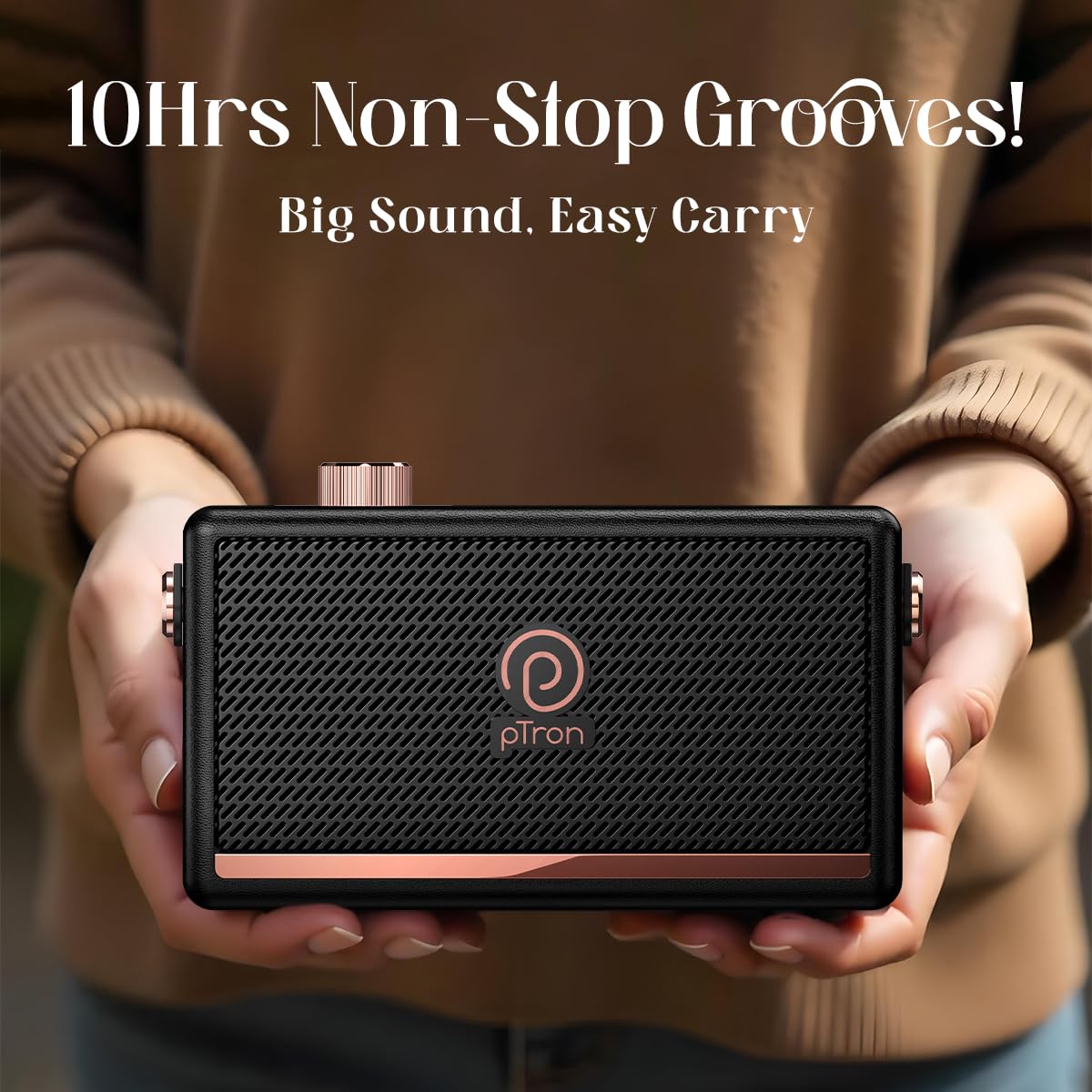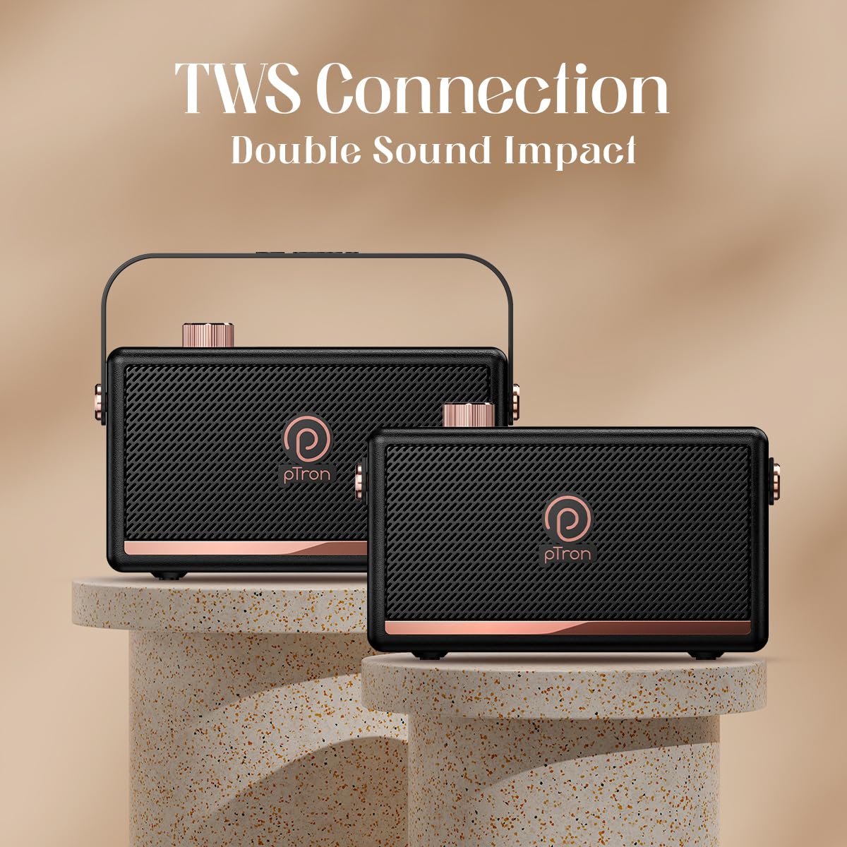 pTron Fusion Pro Retro Signature 20W Bluetooth Speaker with Pristine Sound, 8 Hours Playtime, Dual Drivers, Playback via BT5.3/USB/TF Card, Easy Controls, Portable Speaker & Type C Charging (Black)