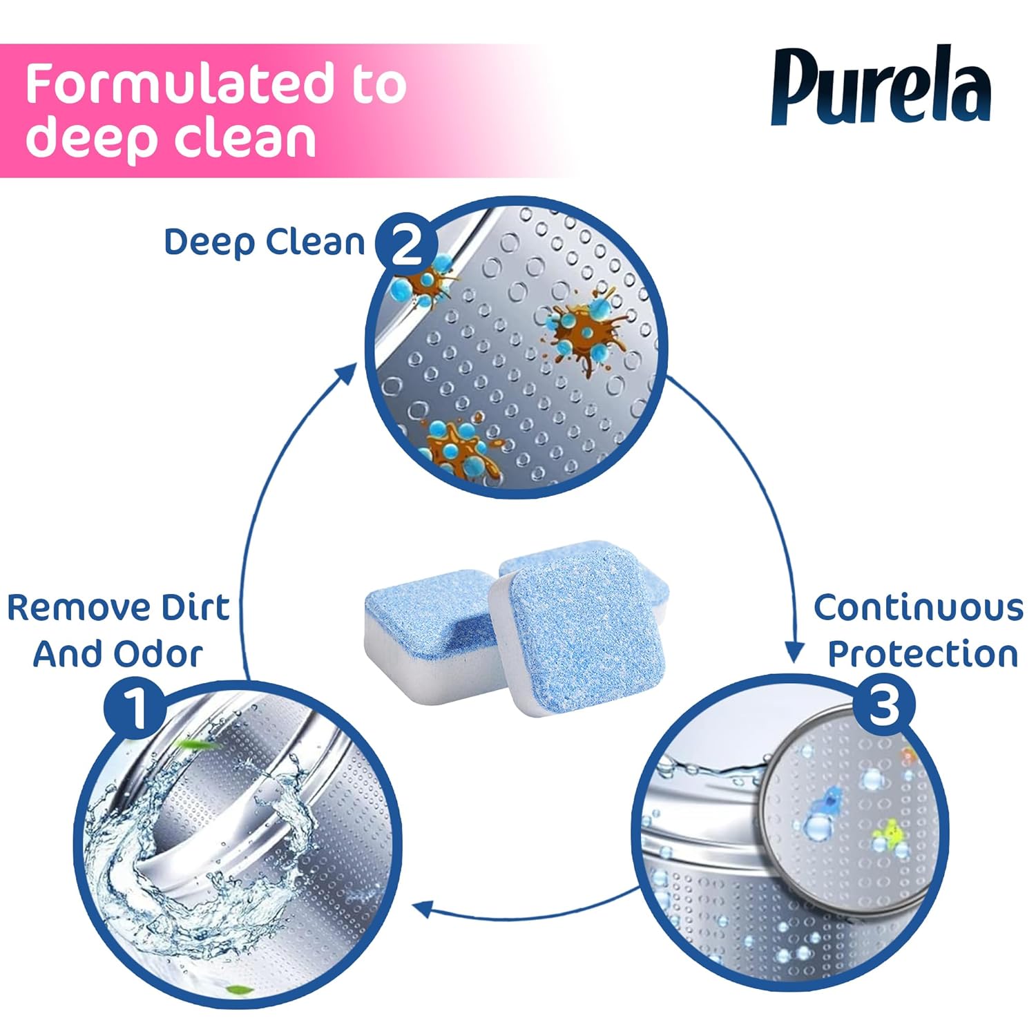 Works with all washer machine types and HE high efficiency, Major manufacturers recommend cleaning your washing machine once a month to extend its life; Purela’s high-quality ingredients require no need for scrubbing.