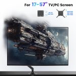 PUTORSEN heavy duty desk monitor mount stand for most 17-57 Inch LED LCD TVs & PC screens up to 59.4 lbs, tv desk stand with a durable steel structure, the premium gas spring mechanism offers dynamic movements including tilt, swivel and rotation, allowing the user to adapt to a more ergonomic posture. detachable VESA plate allows for quick installation or removal of the monitor, Grommet and clamp mounting options included for installation on most work surface,topside installation base both enhance user experience. Built-in cable management and the Allen key helps to keep everything neat and organized.