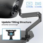 Smart Angle& Height Adjustment: Features ±90°swivel, ﹢60°/﹣20° tilt, ±90° rotation, the gas spring arm has a maximum arm extension is 22.83” and a maximum height adjustment is 25.79″ from the work surface. Easily find an optimal ergonomic posture, and relieve strain on the spine, neck, and shoulders.