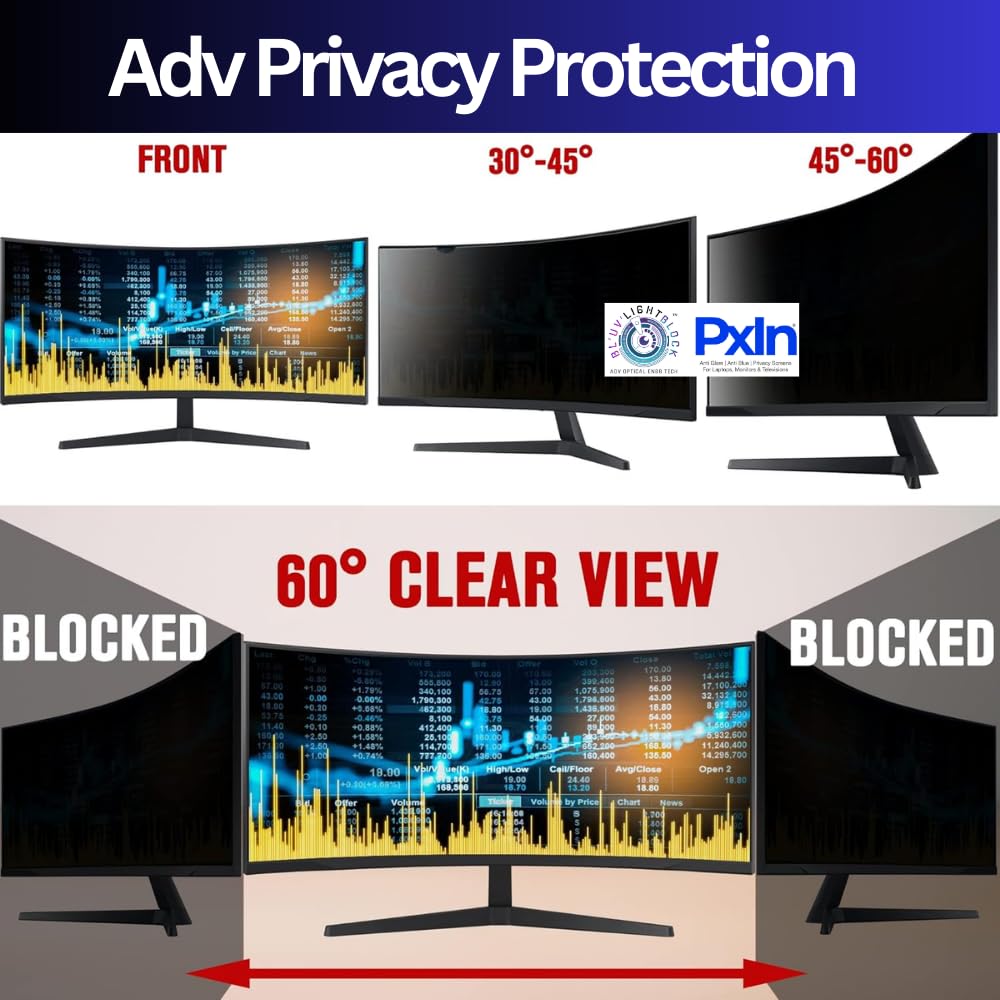 PxIn Smart Eye 32 Inch (16:9) Curved Monitor Privacy Screen Filter – NO Eye Strain | Anti-Blue Light + Anti-Glare | Privacy Screen Protector