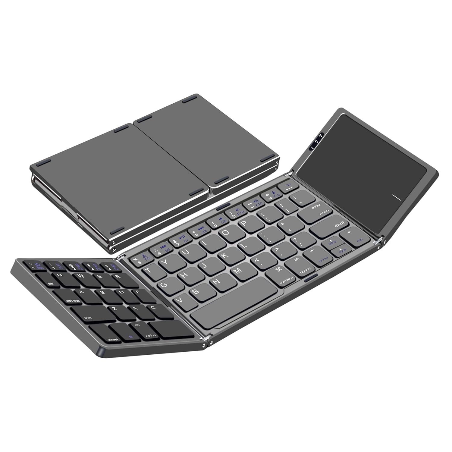 Folding keyboard with touchpad makes it easy to carry around in your pocket or backpack. The mini keyboard features premium matte aluminum with excellent sense of touch.
