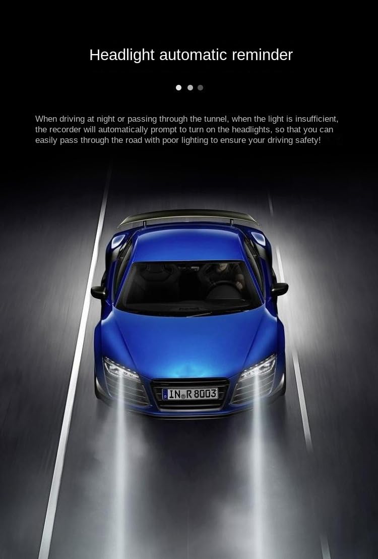 The Dashcam will give a alarm/reminder in case your headlight is off.