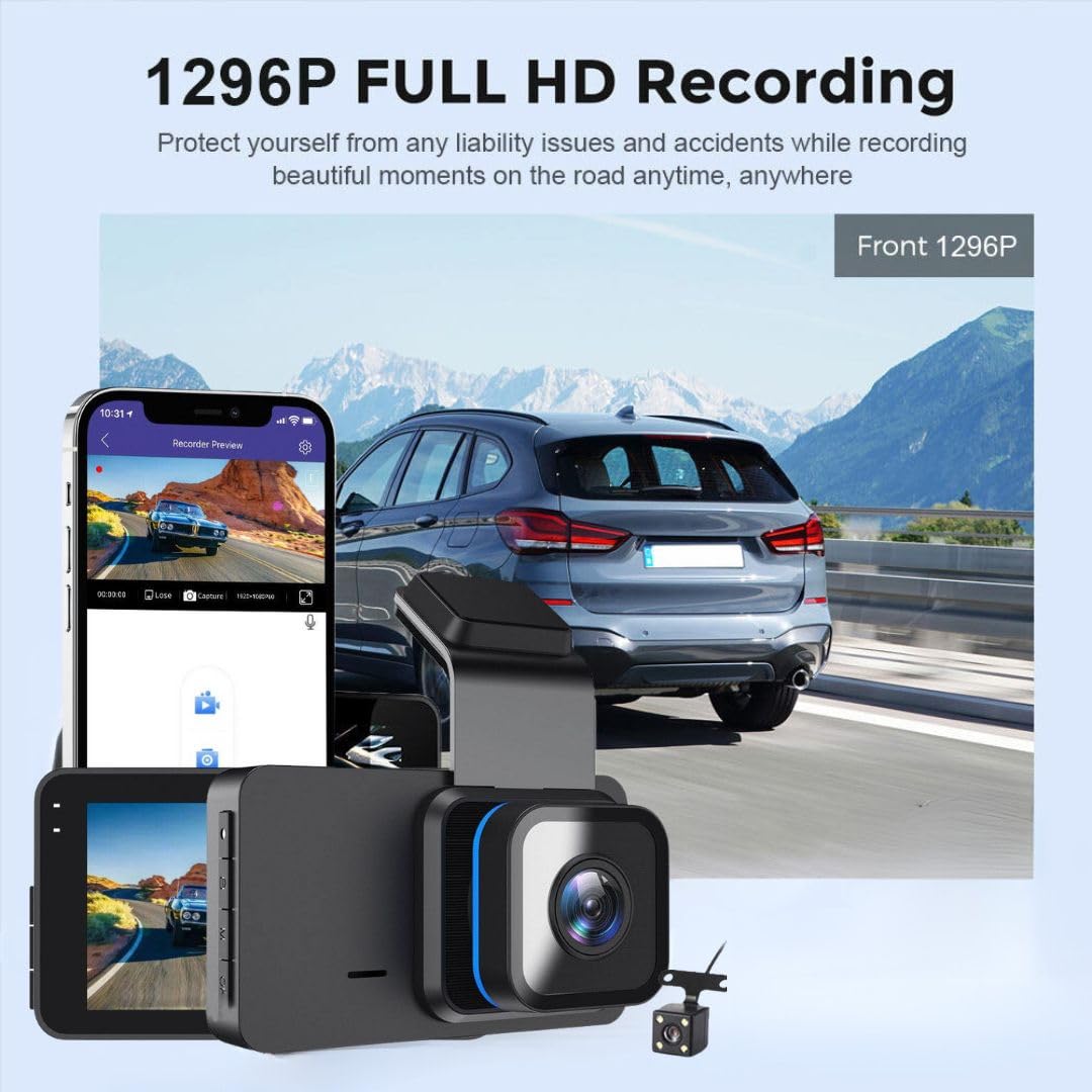 Record the front in 2k and rear views in HD, giving you comprehensive coverage of your surroundings and enhancing your driving awareness. Also,Review footage and adjust settings on the crisp 3-inch LCD screen