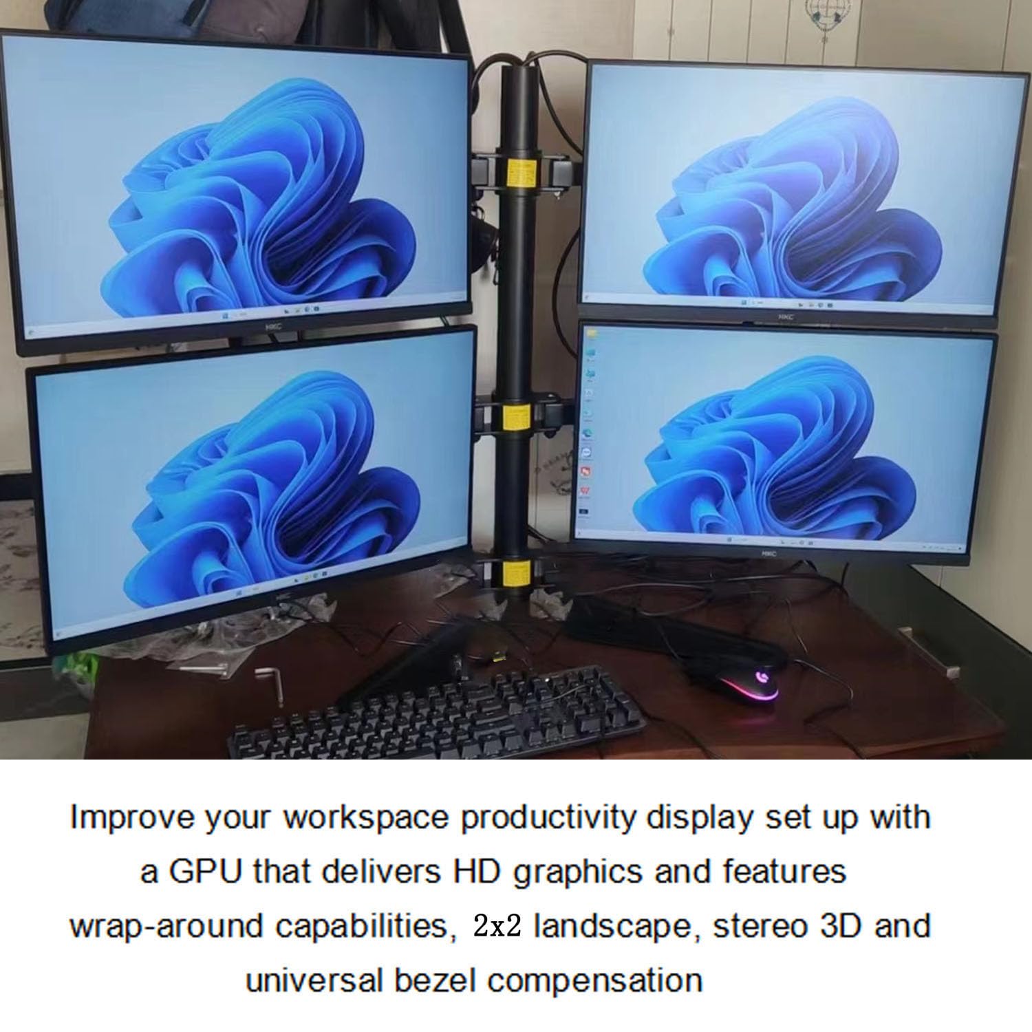 Supported Operating Systems: This 4-display video card is available for the following operating systems: Windows 11-64 bit, Windows 10 64 bit, Windows 7 64 bit.(SIZE:180*120*40mm(full height baffle size))