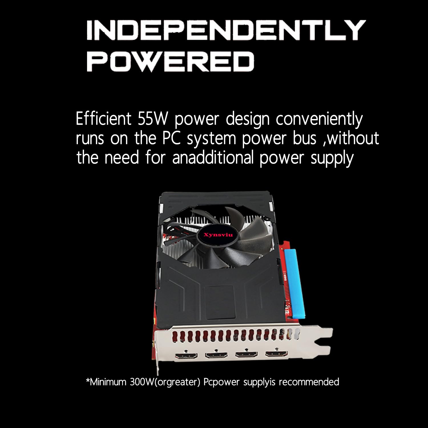 How a multi-monitor system can benefit your business. · In the digital age, everything takes place on a screen. It can be difficult to jump between different windows and get work done efficiently. · For individual users, a multi-monitor setup will increase your productivity and save you time and energy as you will have plenty of screen space without having to reduce the size of your windows to display more content on a single screen and without having to constantly switch back and forth between windows. · For business users, this system will ensure that your business stands out from the crowd. The system features editable displays that you can use to show off your latest products and services and introduce potential buyers to your current inventory. · About the RX560 Graphics Card with Multi-Monitor Display With six built-in native HDMI 2.0 ports, the RX560 Graphics Card supports up to six monitors at once, boosting productivity by supporting multitasking without having to switch between them. Low power consumption design, only around 80W at full load. · Maximum resolution: 3840×2160@60Hz (single/split screen). It can be used smoothly after loading the driver, and can meet the needs of daily office tasks and light gaming, (driver can be downloaded from the website). · After installing the graphics card driver, you can find the splicing and cloning settings in the AMD control panel, and realize: can one screen. Can be the same screen, can be different screen. · Supported systems: Windows 10 32/64-bit, Windows 8.1 – 32/64-bit, Windows 8 – 32/64-bit, Windows 7 – 64-bit, Windows 11 – 32/64-bit, and so on. · APPLICATIONS: This graphics card is suitable for a variety of scenarios, including home entertainment, light gaming and speculative office tasks, and monitoring the big screen. However, for more complex applications such as graphics processing or video editing, users may need a more powerful graphics card.