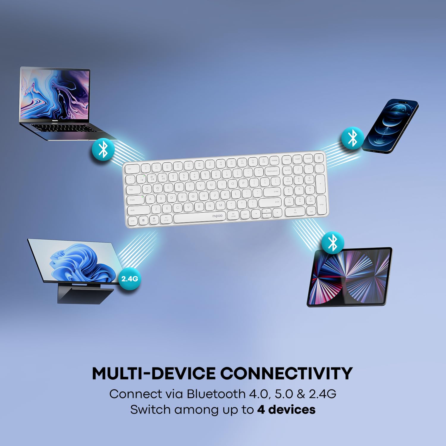 Rapoo E9350L allows you to connect up to 4 devices simultaneously for seamless multitasking!