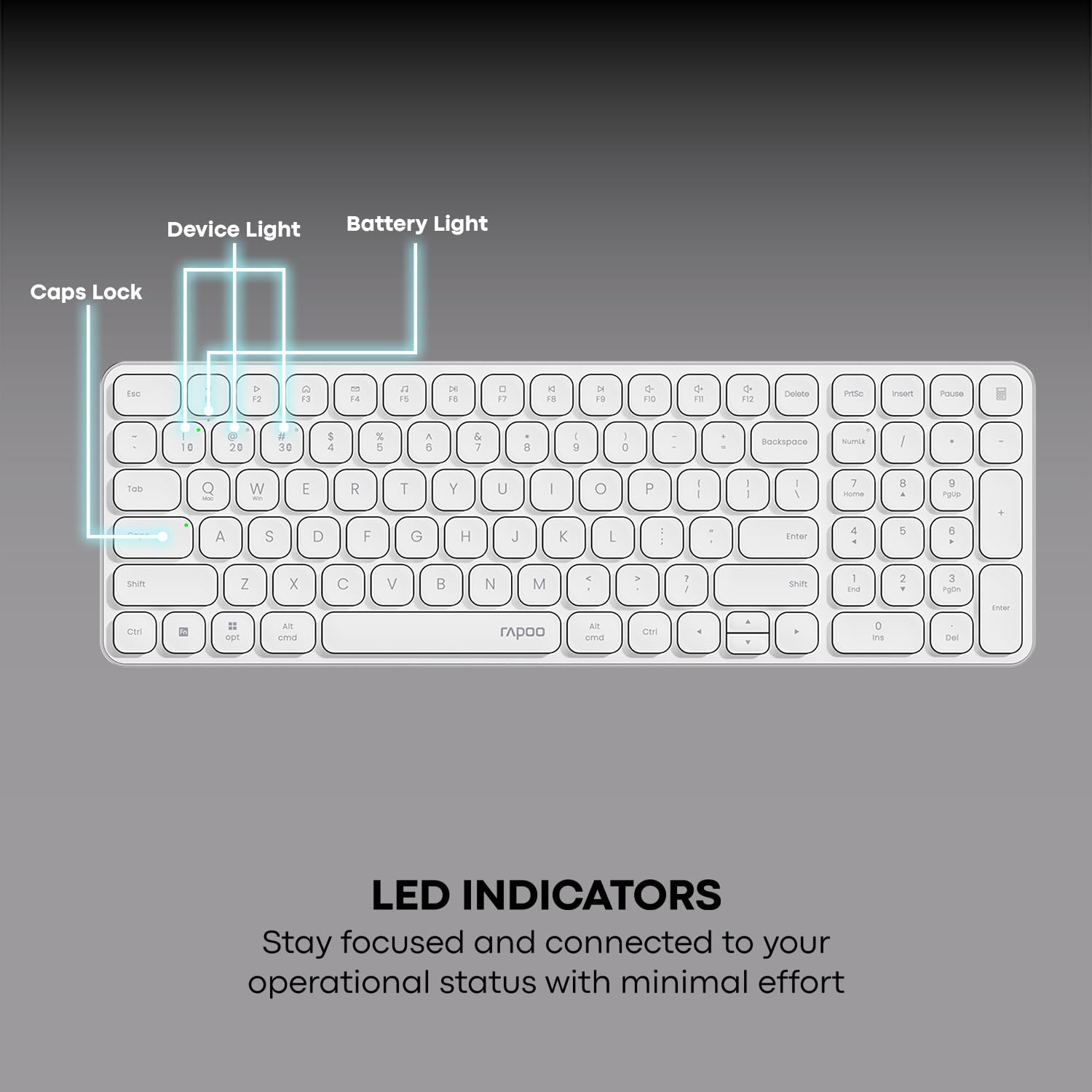 LED Indicators for Device Connection & Caps Lock: Easily identify which devices you’re connected to via Bluetooth and monitor Caps Lock status with clear LED indicators, enhancing your typing experience.