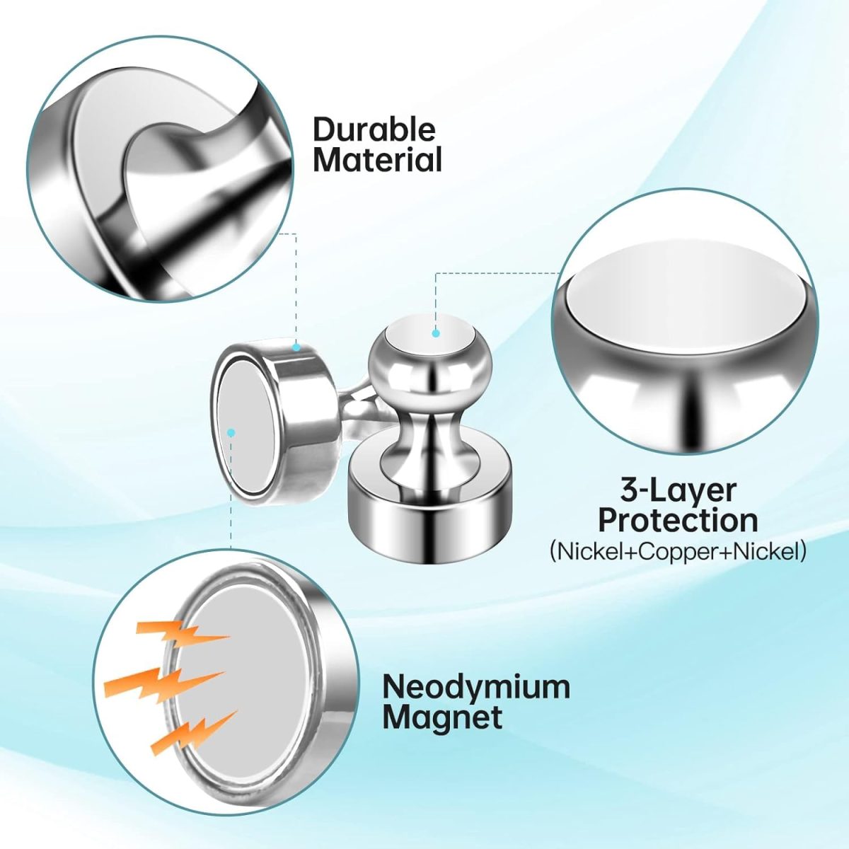 🌈【VALUE SET】 You will get a pack of 24 silver magnetic push pin, If you have any questions about push pin magnets, please feel free to contact us, we will provide you with 24/7 after-sales service. Highly recommend! Tips: these magnets could easily be swallowed by kids. Not safe around little ones.