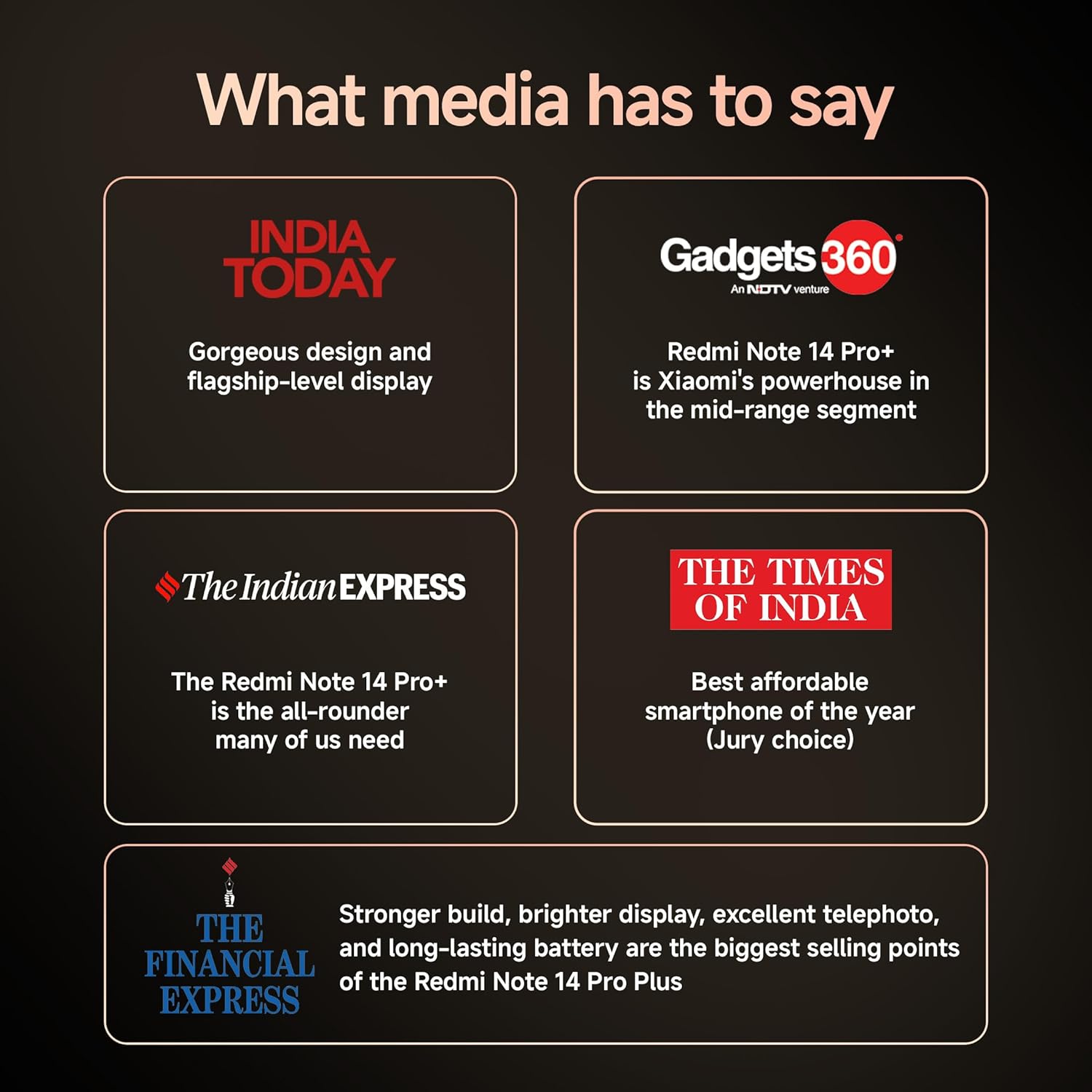 Redmi Note 14 Pro+ 5G Champagne Gold 8GB RAM 256GB Storage| 50 MP Triple Camera with Telephoto | Corning Gorilla Glass Victus 2 | IP68 IP69 | SD 7s Gen 3
