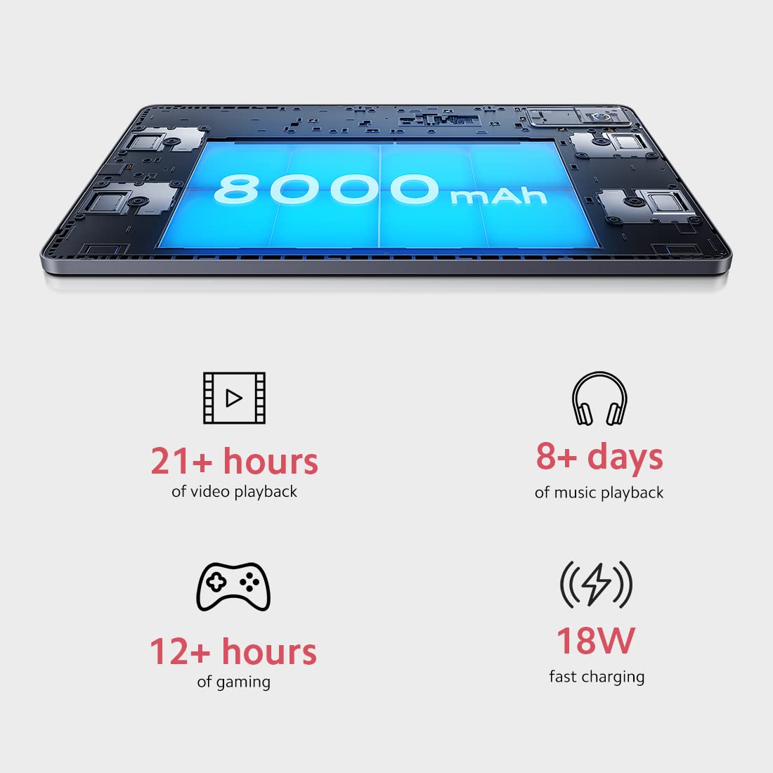 Consume media, play games, and scroll through content endlessly with 8000mAh battery on Redmi Pad
