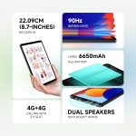 8.7-inch HD+ display with a 90Hz refresh rate and support for 1 billion colors. MediaTek Helio G85 processor for smooth performance in daily tasks and light gaming. 6650mAh battery with up to 14 hours of video playback and 10W charging via USB-C. Dual stereo speakers enhanced by Dolby Atmos for immersive audio. Expandable storage (up to 2TB via microSD) and dual SIM 4G voice calling support
