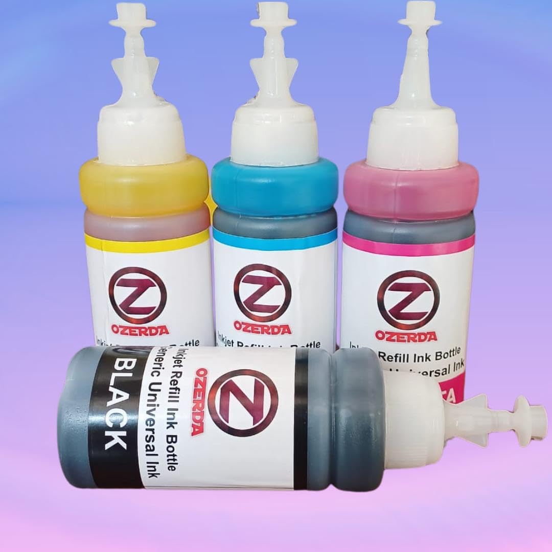 ⚫🔵🔴🟡 Colors : Black, Cyan, Magenta & Yell ML While Cyan, Yellow & Magenta Each Bottle Consists of 70 ML Refill Ink.