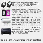 Compatible Printers Cartridges- 805, 860, 861, 803, 680, 678, 682, 818, 802, 901, 703, 704, 702, 831, 830, 46, 21, 22, 27, 28, 56, 57&, PG88, CL98, PG745, CL746, PG810, CL811, PG740, CL741, PG40, CL41, PG89, CL99, PG830, CL831