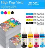 Proudly Made in India. Enjoy High Yield performance of 6500 pages with 5% coverage Per 100ml. Outstanding Ink Stability The Demineralized water based ink produces bright and vivid color which is in high saturation, good permeability excellent water-fastness and light-fastness, fast drying Water resistance and no fading. Easy To Refill
