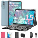 Relndoo Android 15 2025 Tablet with Keyboard, 24GB+128GB+2TB Expansion, Octa-Core 2-in-1 10 Inch Tablets with WiFi 5G/2.4G, 8000mAh, BT5.0, GMS, with Mouse, Case, Pen, Screen