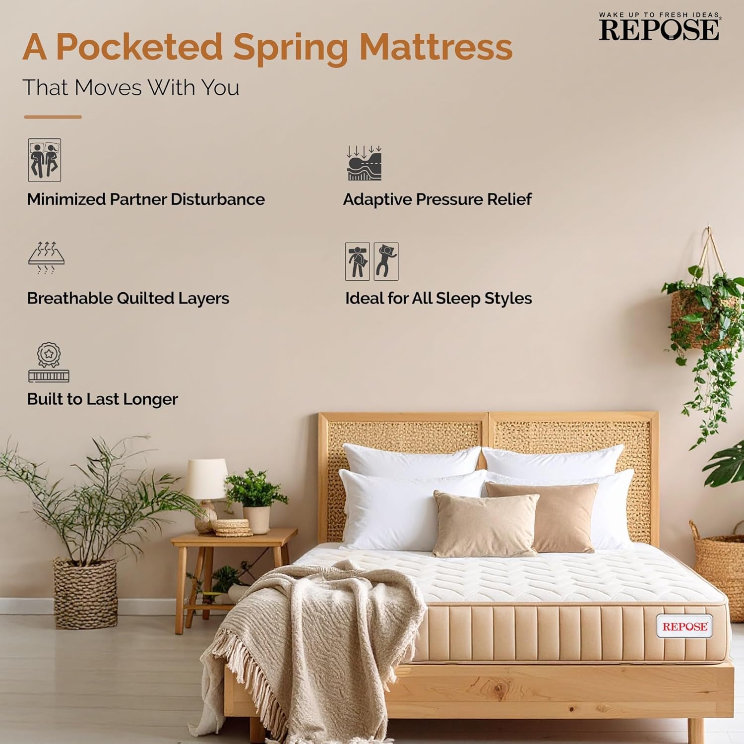 The pocketed spring mattress provides luxury, spine support and comfortable sleep. The amazing feature gives no role-over effect due to independent movement with spring unit pockets.