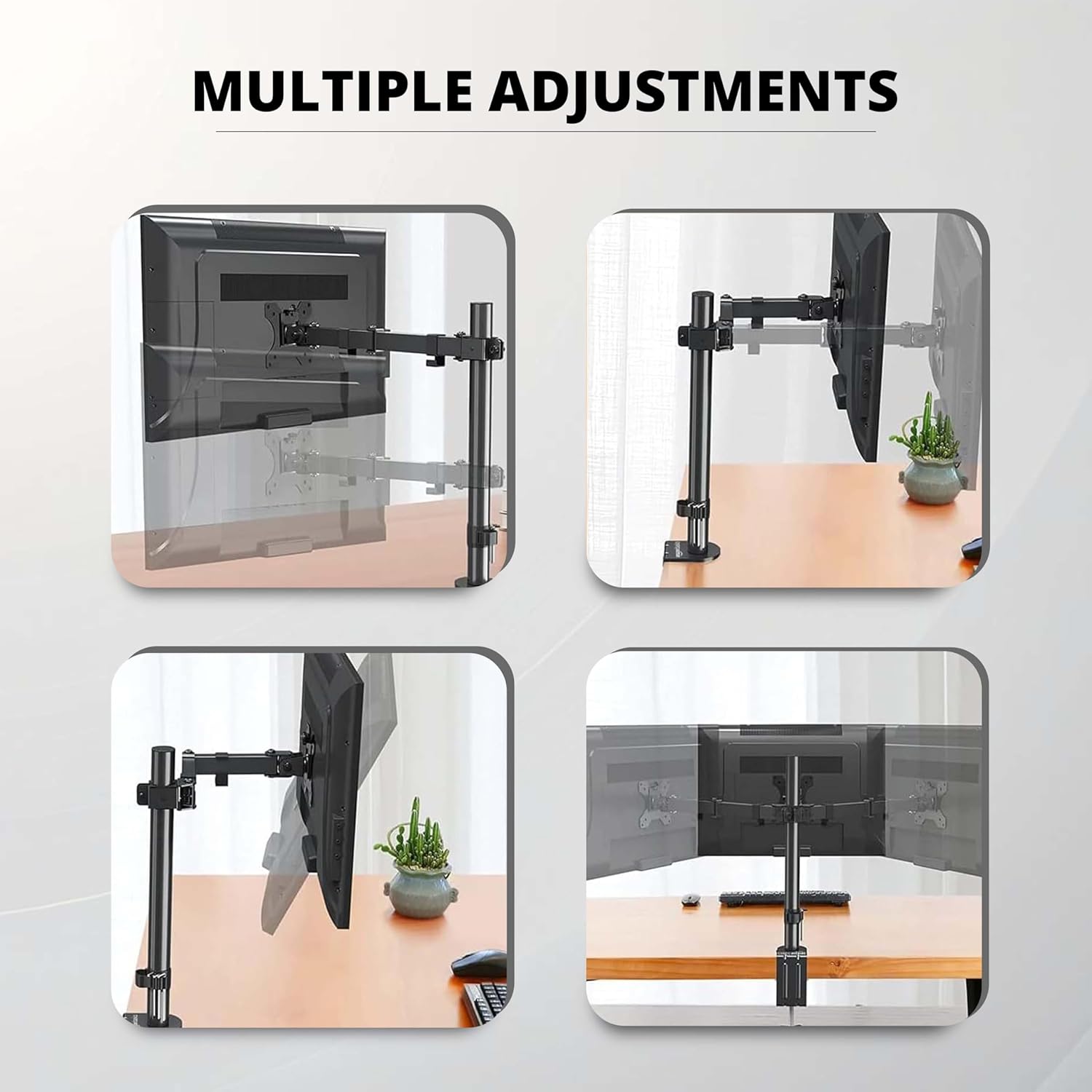 Adjustable Monitor Arm: The Robustt Monitor arm desk Mount features a versatile arm that swivels 360 degrees and rotates between landscape and portrait modes. With a 15-degree tilt function and adjustable height, it offers easy adjustment for optimal monitor positioning.