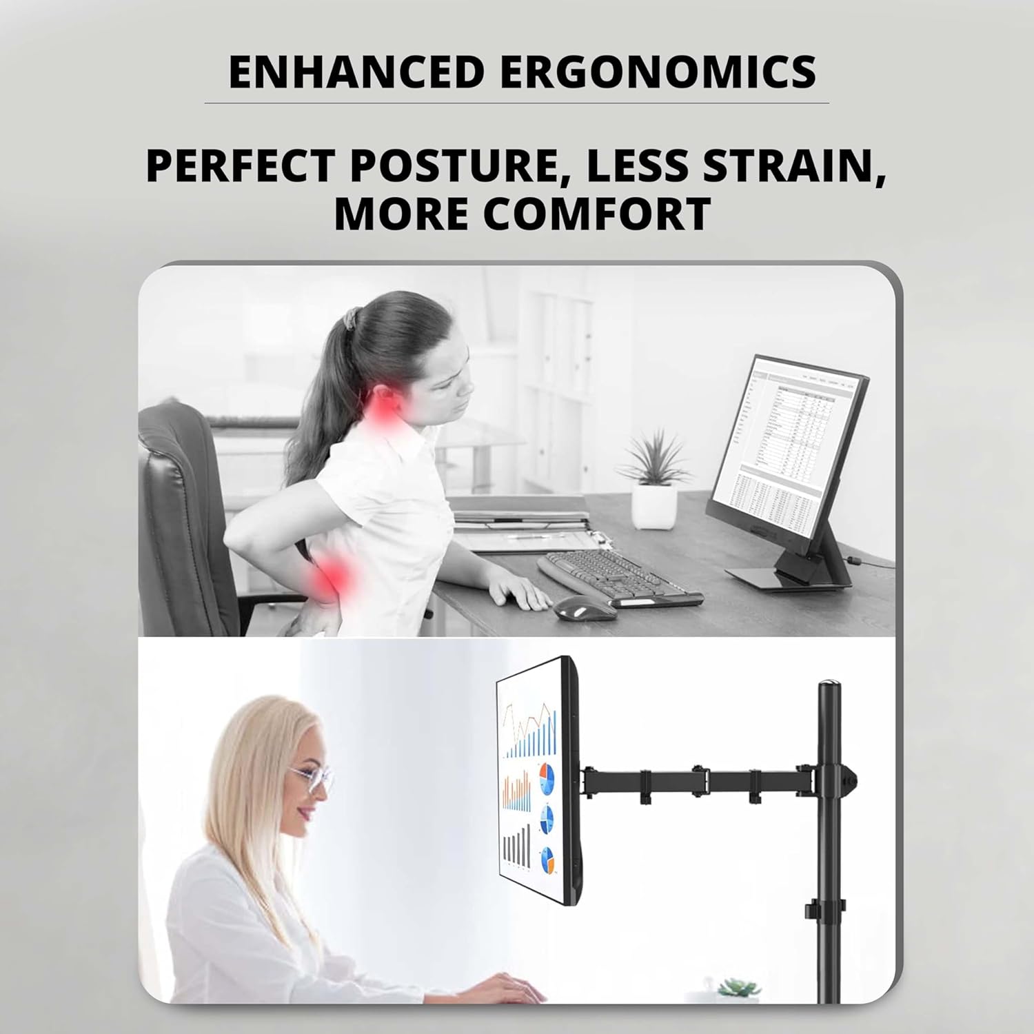 Ergonomic Desgin: The ergonomic design of the Robustt Monitor Mount for Desk aims to alleviate eye strain, neck, and back discomfort. Simply adjusting your monitor’s height with this mount encourages a healthier and more ergonomic workstation setup.