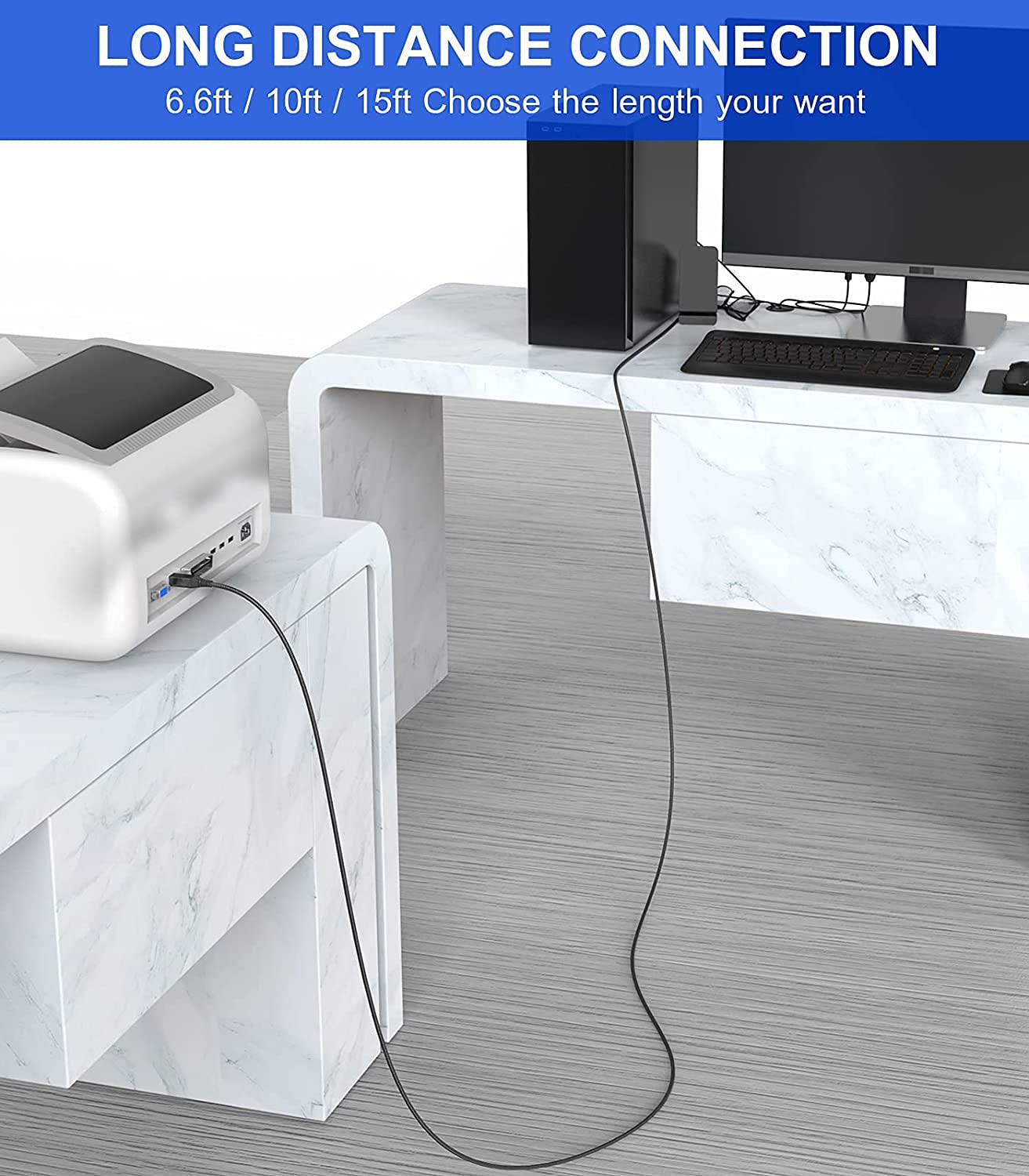 (Cable Length : 2 Meter / 6.56 Feet / 200 CM / 78.74 Inch) ⚡2 Years Warranty⚡【Universal Printer Cable】: rts USB 2.0 Printer Cable is ideal for connecting your scanner, printer, server, camera such as HP, Canon, Epson, Dell, Brother, Lexmark, Xerox , Samsung and other usb b devices to a laptop, computer (Mac/PC) or other USB-enabled device. ⚡ [High Speed Transfer]: Up to 480 Mbps transfers data speed for USB 2.0 devices, the printer cable is backwards compliant with full-speed USB 1.1 (12 Mbps) and low-speed USB 1.0 (1.5 Mbps). 💪[Gold-plated Connectors]:Constructed with corrosion-resistant, gold-plated connectors for optimal signal clarity and shielding to minimize interference. USB Printer Cable Adds the strong military fiber, the most flexible, powerful and resistant material, makes tensile force increased by 200%, And Special Strain Relief Support design, can bear 15000+ bending test, protect the most vulnerable joint of the printer cable, premium aluminium housing adds the durability of the cable. 📢[Nylon Tangle-free Design]: Tangle-free Nylon Braided Design, this USB 2.0 Printer Cord is far more dependable than others in its price range. Premium nylon braided cable adds additional durability and tangle free. 💗 [What You’ll Get ]- 1*pack Printer Cable,24/7 Friendly Customer Service,24 months warranty.Once there’s any questions,please feel free to contact us.Thanks! Long-Lasting Performance Design : Tangle-free cord design eliminates bunching, tangles, and knots. Seamless molded joint, gold-plated contacts and bulit-in 56kΩ resistor provide outstandingly reliable conductivity and stability. 【Ideal Printer Cable】Printer Cable can easily can connect usb type b scanners, printers, all-in-one machines, fax machines and other usb-b devices to your laptop. It can help you solve the problem of file transfer errors and improve office efficiency. Note: This USB Printer Cable is suitable for most printer devices, printing is related to software, please make sure that your device has downloaded the driver, select the corresponding model when printing. and other USB b devices to a laptop, computer (Mac/PC), or other USB-enabled devices for data transfer. Compatible Devices (Partial List): HP Deskjet 2540 / 3630 / 2132 / 2130 / 3520 / 3720 / 2542 / 3636 / 2544 / 3050A etc; Officejet 5740 / 3831 / 4658 / 6600 / 4500 / 4650 / 4620 / 3830 etc; HP Envy 4527 / 4520 / 4523 / 5546 / 7640 / 5530 / 5540 / 4524 / 5544 etc; HP Photosmart 5520 / 5510 / 6520 etc; Canon Pixma MG2520 / MG3550 / MG3650 / MG4250 / MG5220 / MG5550 / MG5750 etc; Canon i-SENSYS LBP6030w / LBP6200d / MF8280Cw etc; Epson XP-225 / XP-235 / XP-345 / XP-435 / XP-430 / XP-335 / XP-432 / XP-630 / XP-330 etc; Epson Stylus SX130 / SX235w / SX400 / SX515w etc; Epson WF-2540 / WF-2650 / WF-2660 / WF-2750 / WF-3520 / WF-3540 / WF-3620 / WF-2630 / WF-3640 etc; Brother MFC-1910w / MFC-9330cdw / DCP-195c / DCPl-7055 / DCP-l2520DW etc; Brother MFC-1910w / HL-l8250CDN / MFC-9330cdw / Hl-l2300D / DCP-195c / DCPl-7055 / DCP-l2520DW etc; Lexmark X4650 / X5650 / CS317dn / CX510de / MS317dn / MX310dn / CX310n / MS711dn etc; Samsung CLX-3305FN / CLX-3175FW / ML-1010 / ML-1200 / ML-1250 etc; Oki ML1120 / C5650dn / C301dn / MC362dn / MC563dn etc; Yamaha digital piano,Midi Controller, Midi Keyboard, Audio Interface Recording, USB Microphone, sound bar, DAC etc.