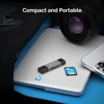 The Sabrent USB 3.0 and USB Type-C OTG Card Reader (CR-BCA2) offers a compact solution to access the most popular flash media, Including SD, SDHC, Mini SD, Micro SD T-Flash. Transfer files easily from your flash memory to your computer at super-fast USB 3.0 speeds of up to 5gbs (reverse compatible with USB 2.0); or you can use the card reader, with memory inserted, as a virtual thumb drive and transport your files from your computer on the go.