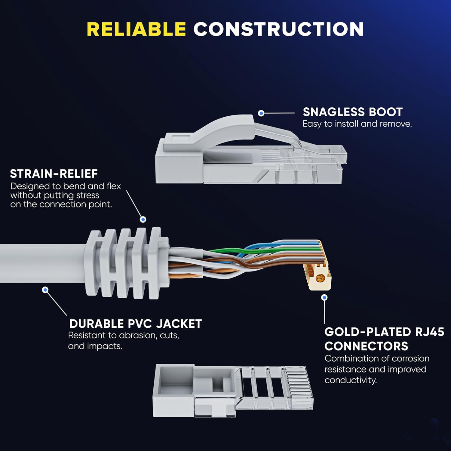 Gold Plated RJ45 Connectors. This cable is perfect for 1-Gigabit Ethernet and is backwards compatible with any existing Fast Ethernet and Gigabit Ethernet.