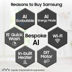 Additional Features: WiFi Embedded| SmartThings App Support| Smart Things| Bubble technology| Delay End| Steam| Child Lock| Hot/Cold Water Inlet : Cold| Stay Clean Drawer