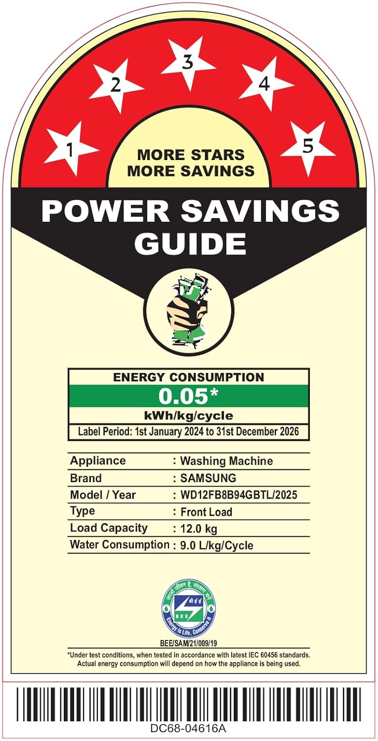 Key Performance Features: AI Ecobubble with 45% better fabric care | AI Energy Mode for up to 70% energy savings | AI Wash | Air Wash | Wi-Fi Embedded – Operate remotely | Smartthings for home integration | Hygiene Steam | Super Speed – Wash is just 39 minutes | SpaceMax – Creates more space inside to incorporate a larger drum | 15′ Quick Wash | Bubble Soak | Drum Clean+ Removes dirt and 99.9% of odor-causing bacteria | Pre Wash | In-built Heater for Hot & Cold wash