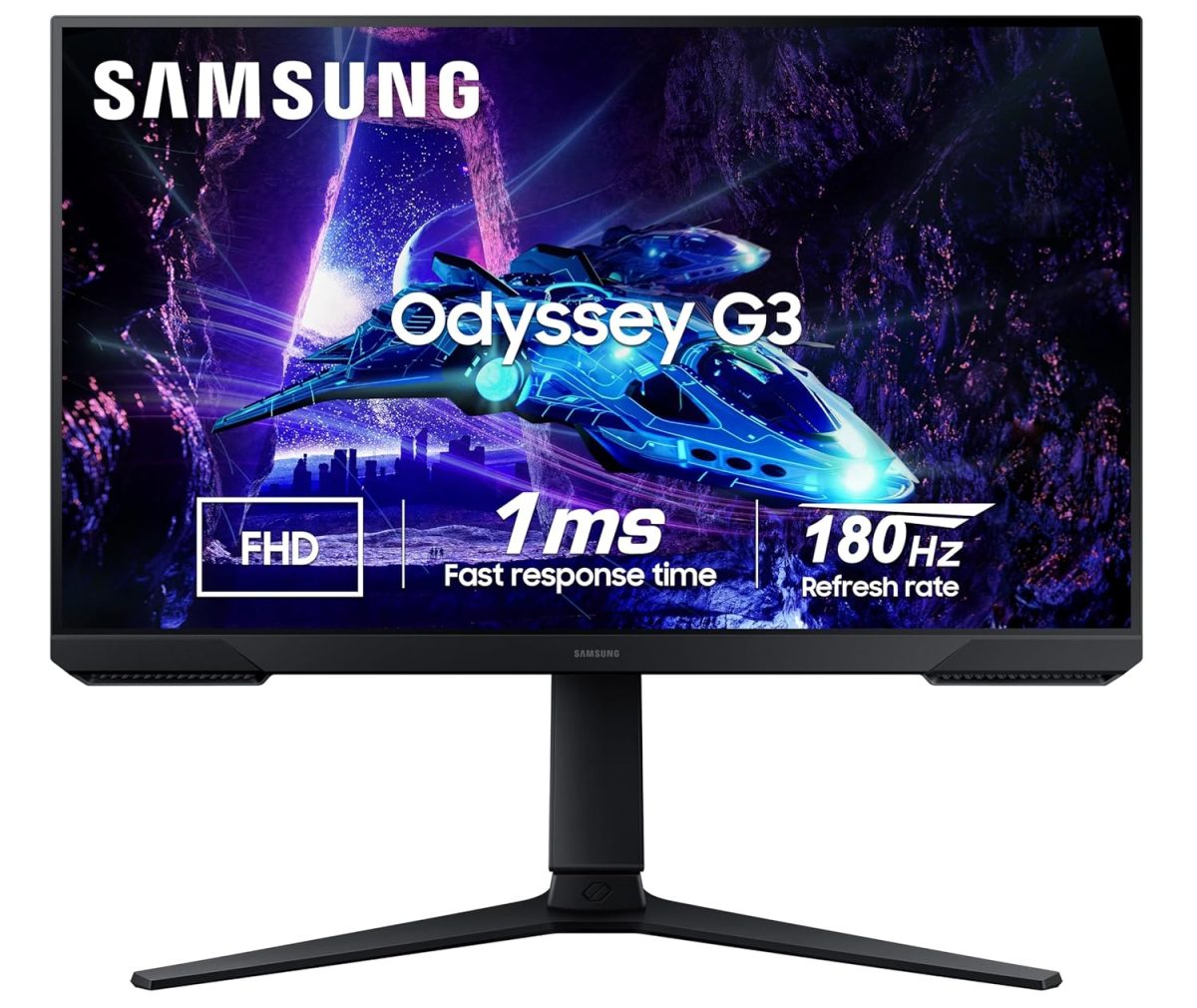 Samsung 27″ (68.5cm) Odyssey G3 Gaming Monitor|FHD 1920 X 1080|180Hz|1ms(MPRT)|AMD Freesync|Ports-DP,HDMI|DP Cable|16.7 Million Colors|Height-Tilt-Pivot Adjustable Stand|Bezeless|LS27DG300EWXXL|Black