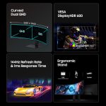Curved Dual QHD with a 1000R curved display | VESA DisplayHDR 600 | AMD FreeSync Premium Pro | Picture-by-Picture & Picture-By-Picture (Side-by-side gameplay in one screen) | Auto Source Switch+ | Eye Saver Mode & Flicker Free | Height Adjustable Stand 120.0 ±5.0, Tilt -2.0º(± 2°) ~ +11.0º(± 2°), Swivel -15.0º(± 3°) ~ +15.0º(± 3°) | Wall Mount Compatible