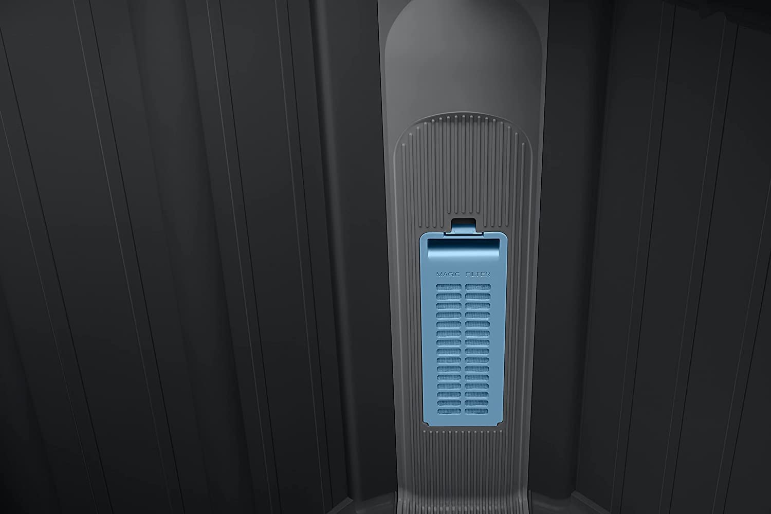 Keep unsightly speckles off your whites and darks, and protect the drainage from getting clogged up. A Magic Filter with a dual mesh, at the front and back, effectively gathers the lint, fluff and particles that come out of your laundry. And it is easy to empty out the filter, as it opens 180°.