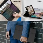 Backlit Keyboard for Samsung Tab A9+ 5G – A9 Plus tablet case with keyboard provides 3 zone 7 color backlight options and 3 brightness modes, has 3 brightness adjustment modes for convenience. The wide design of the backlit keyboard is convenient for typing, and it is full of science and technology. You can read, browse and work freely anytime, anywhere. When working late, simply switch to one of 7 backlit colors to illuminate the keyboard and enjoy 5 hours of battery life