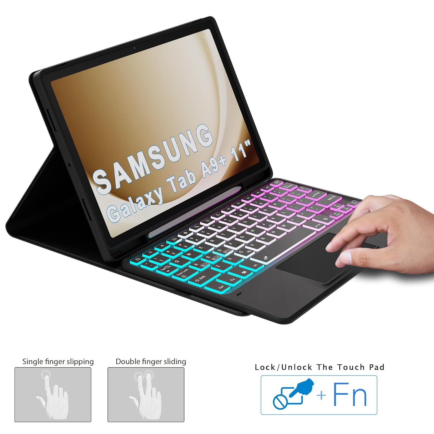 Samsung Galaxy Tab A9+ 5G/A9 Plus 11 Inch Keyboard Case: 3 Zone 7 Colors Backlit Keyboard for Galaxy Tab A9+ Plus 2023 11 Inch – Detachable Smart Touchpad Case