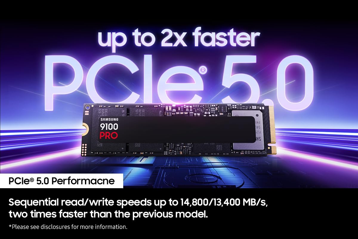 BREAKTHROUGH PCIe 5.0 PERFORMANCE: Supercharge your workflow and gaming with PCIe 5.0, boasting up to 14,800/13,400 MB/s* sequential read/write speeds. Tackle massive files and power up your gaming with Gen5—twice as fast as the 990 PRO SSD.