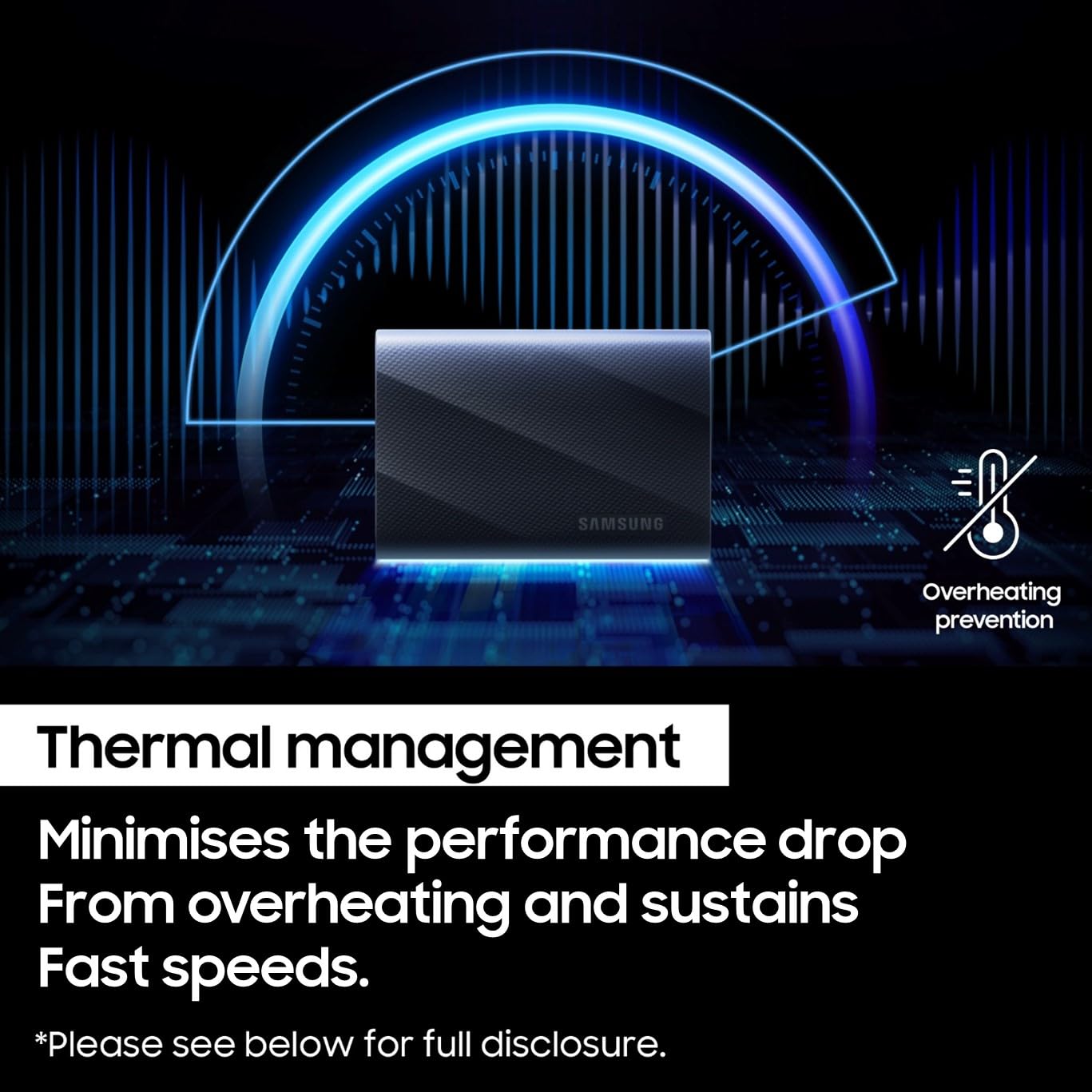 NONSTOP SPEED: Race through projects with our fastest SSD for creators; Load, edit and transfer with sustained read and write speeds of up to 2,000MB/s*; The T9 Portable SSD performs at high speeds even during longer processes DYNAMIC THERMAL GUARD: When you’re elbow-deep in a passion project, the T9 Portable SSD stays cool; Its advanced thermal solution withstands and controls heat to keep the SSD at ideal temperatures—even in heavy use** EXTENSIVE COMPATIBILITY: Whether you’re using a desktop, camera or a gaming console***, count on the T9 Portable SSD for extensive compatibility; It’s a true team player when it comes to heavy-duty application usage or file-saving MADE TO LAST: From concept to completion – the T9 Portable SSD gives you the longevity to last through heavy use and multiple devices; so you only have to keep track of this one stable and convenient drive that dares to go the distance SAMSUNG MAGICIAN SOFTWARE: Your T9 Portable SSD performs like new with the always up-to-date Magician Software; Stay up to speed with the latest firmware updates, extra encryption and continual monitoring of your drive health