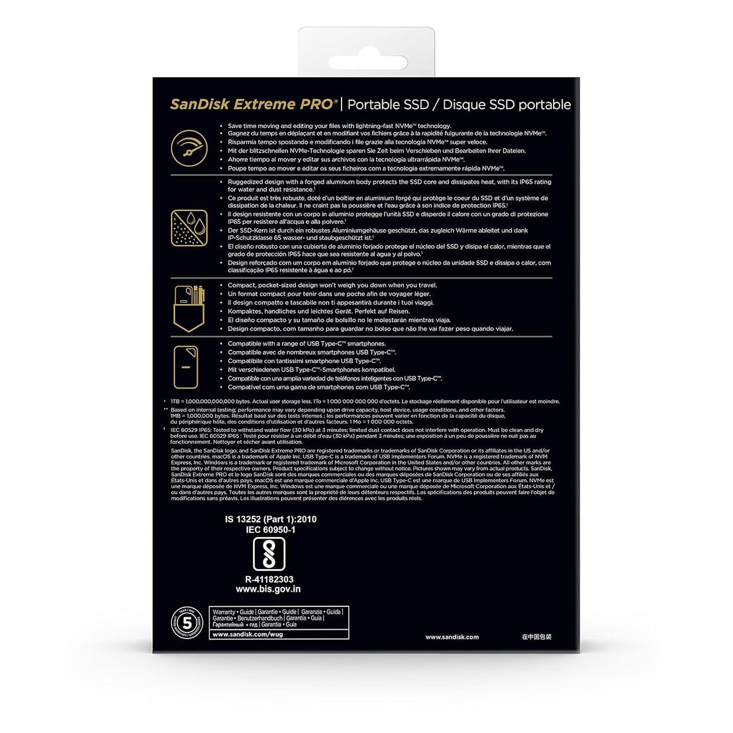 Travel Worry-Free. Get peace of mind when you’re out in the world thanks to a 5-year limited warranty by SanDisk*** and a forged aluminum chassis-silicon shell combo that offers a premium feel and added protection.