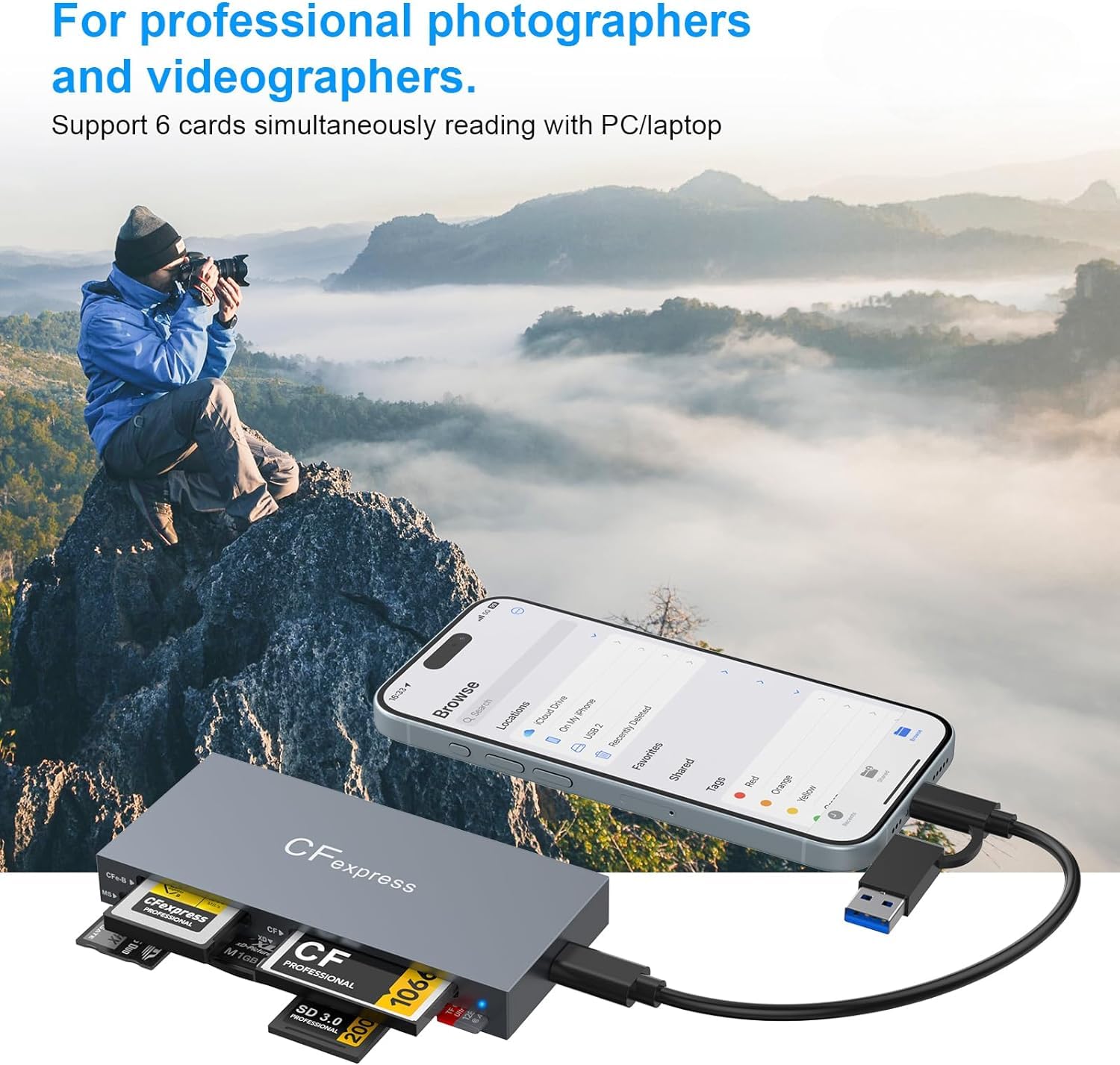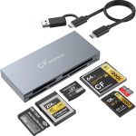 【Superior Compatibility】This Multi CFexpress/SD/XD/CF/TF/MS Card Readers strongly compatible with CFexpress and SD cards, supports variety capacity like 32GB, 64GB, 120GB, 128GB, 240GB, 256GB, maximum capacity up to 2TB. Hot-swapping capability, plug & play design, no driver needed on otg USB-C smartphones, tablets and laptops, compatible with Android, Windows 2000/XP/Vista/7/8/8.1/10(32/64-bit), Mac OS X and above.