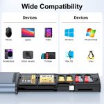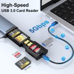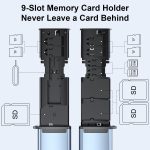 This product offers a 2-in-1 solution by combining an SD card holder and high-speed card reader. It can accommodate 2 Nano SIM cards, 3 SD cards, and 4 TF cards, with the capability to simultaneously read from 3 memory devices.