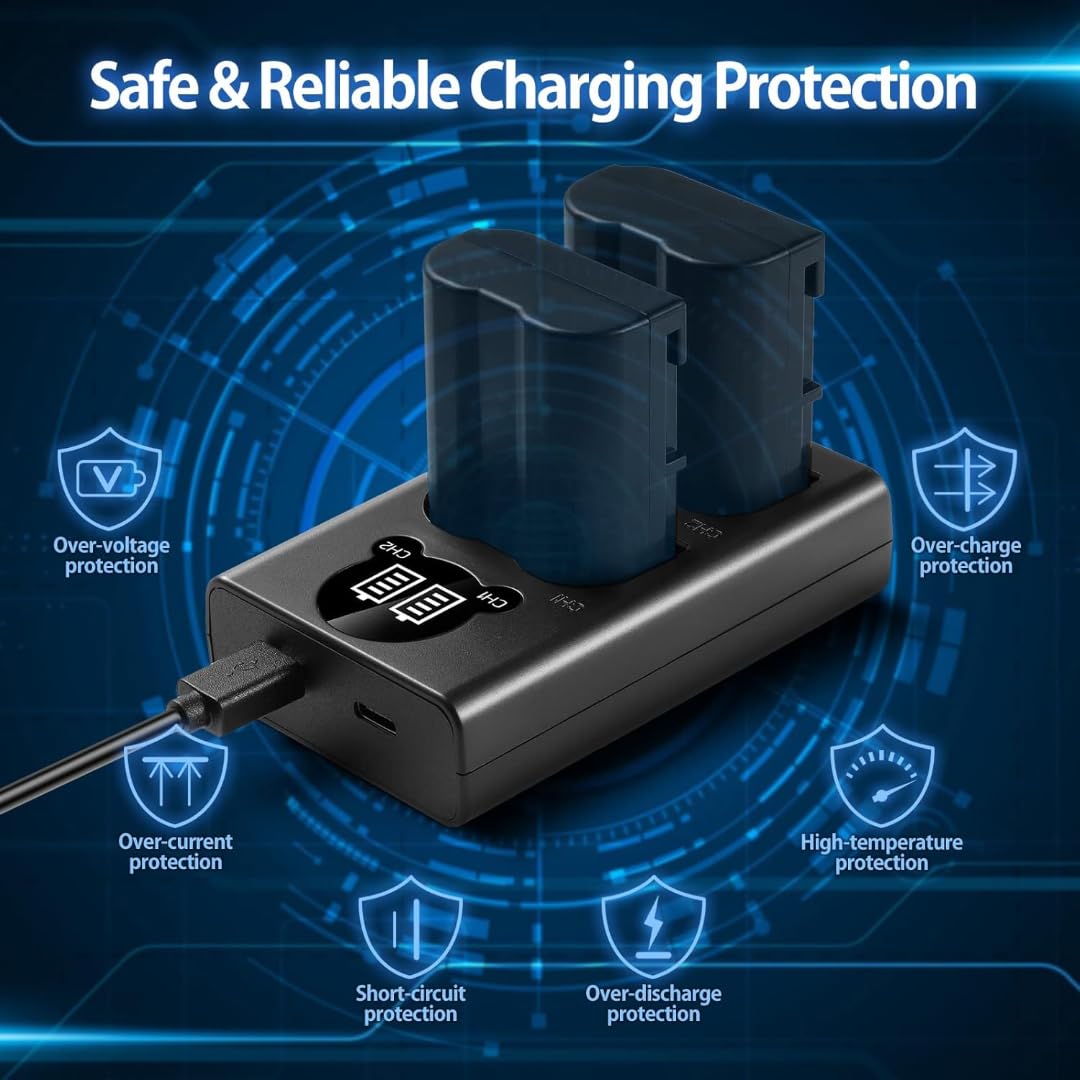 SAFE and RELIABLE: The EN-EL15 dual USB charger designed with over-charging, over-current, over discharge, over-voltage and short-circuit protection ensures reassuring safety